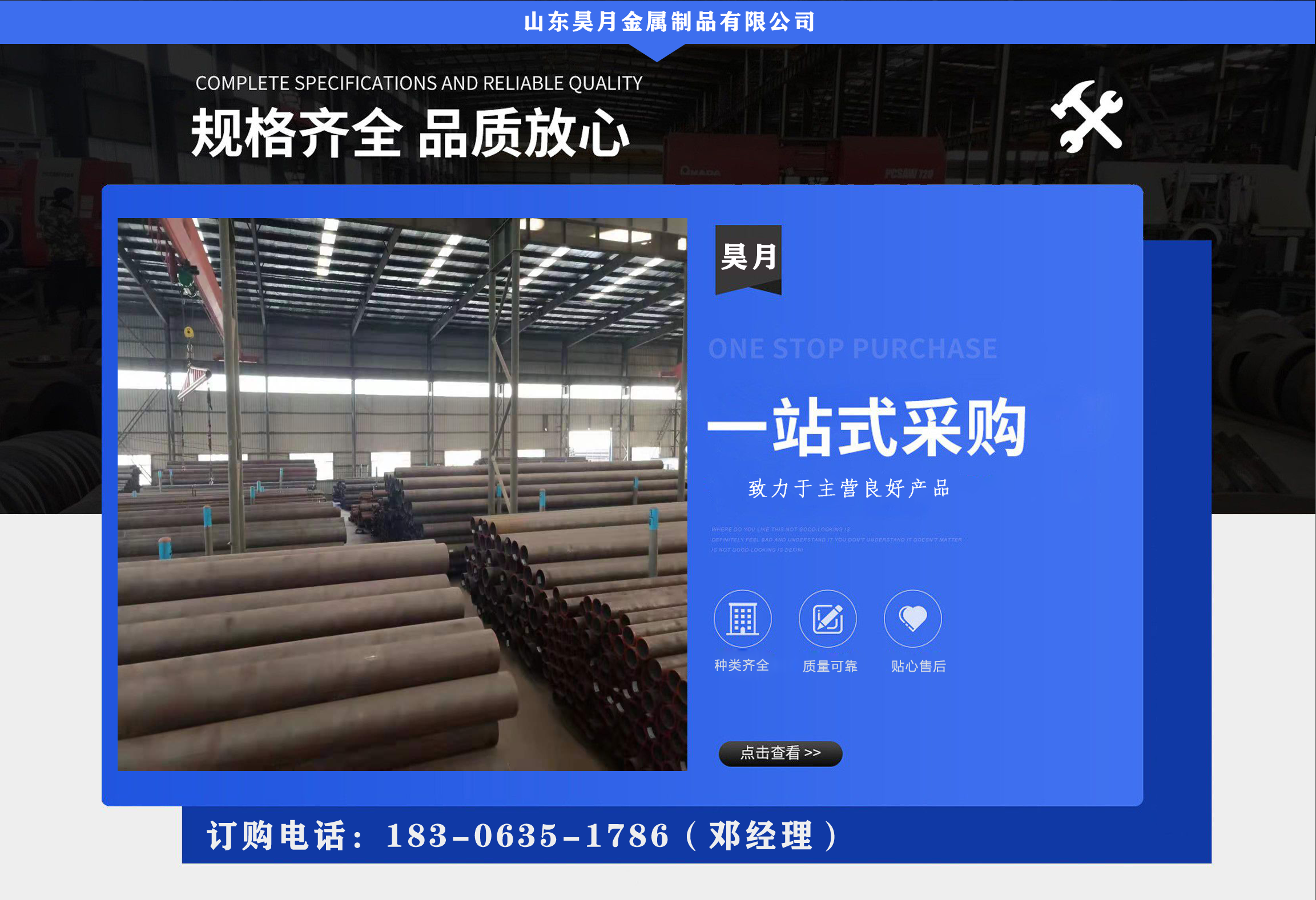 山東昊月金屬制品有限公司是一家鋼材企業(yè)。經(jīng)營(yíng)ND鋼管,ND無(wú)縫鋼管,考登鋼管,09CrCuSb鋼管,空氣預(yù)熱器用耐酸鋼管等?! 》?wù)宗旨:來(lái)到無(wú)貨包損失、貨不滿意不裝車(chē)、辦完手續(xù)再付款 本公司全體員工向關(guān)心和支持我們的各級(jí)領(lǐng)導(dǎo)和各界朋友表示誠(chéng)摯的謝意! 始終堅(jiān)持以市場(chǎng)為導(dǎo)向,不斷壯大企業(yè)規(guī)模,提升企業(yè)核心競(jìng)爭(zhēng)能力,力圖在短時(shí)間內(nèi),創(chuàng)造注漿管品牌,提供滿意的服務(wù)?! 」窘?jīng)理攜全體員工恭候各地新老賓客光臨本鋼管供應(yīng)公司,實(shí)地考察、指導(dǎo)工作、增進(jìn)了解! 歡迎前來(lái)咨詢合作!...